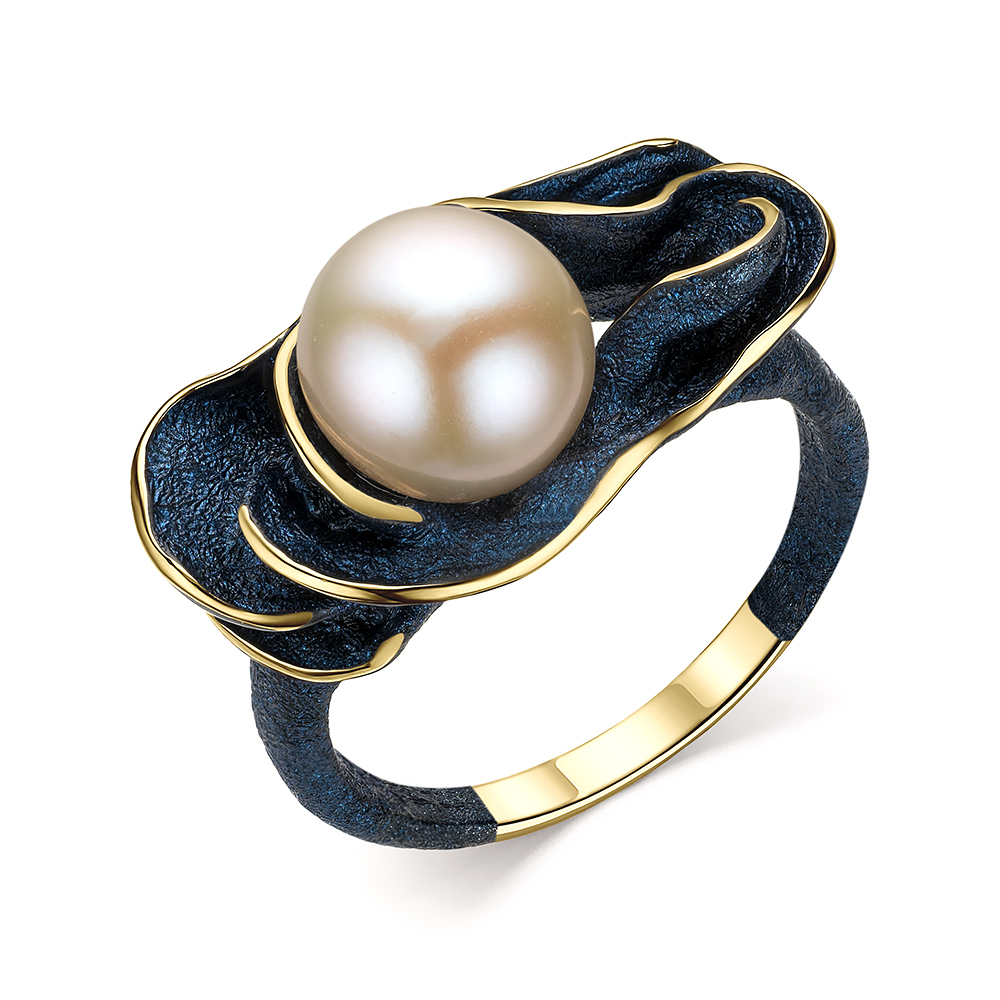 Кольцо с жемчугом и эмалью из серебра 925 пробы с позолотой
