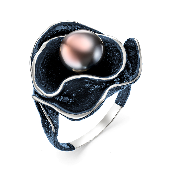 Кольцо с жемчугом и эмалью из серебра 925 пробы