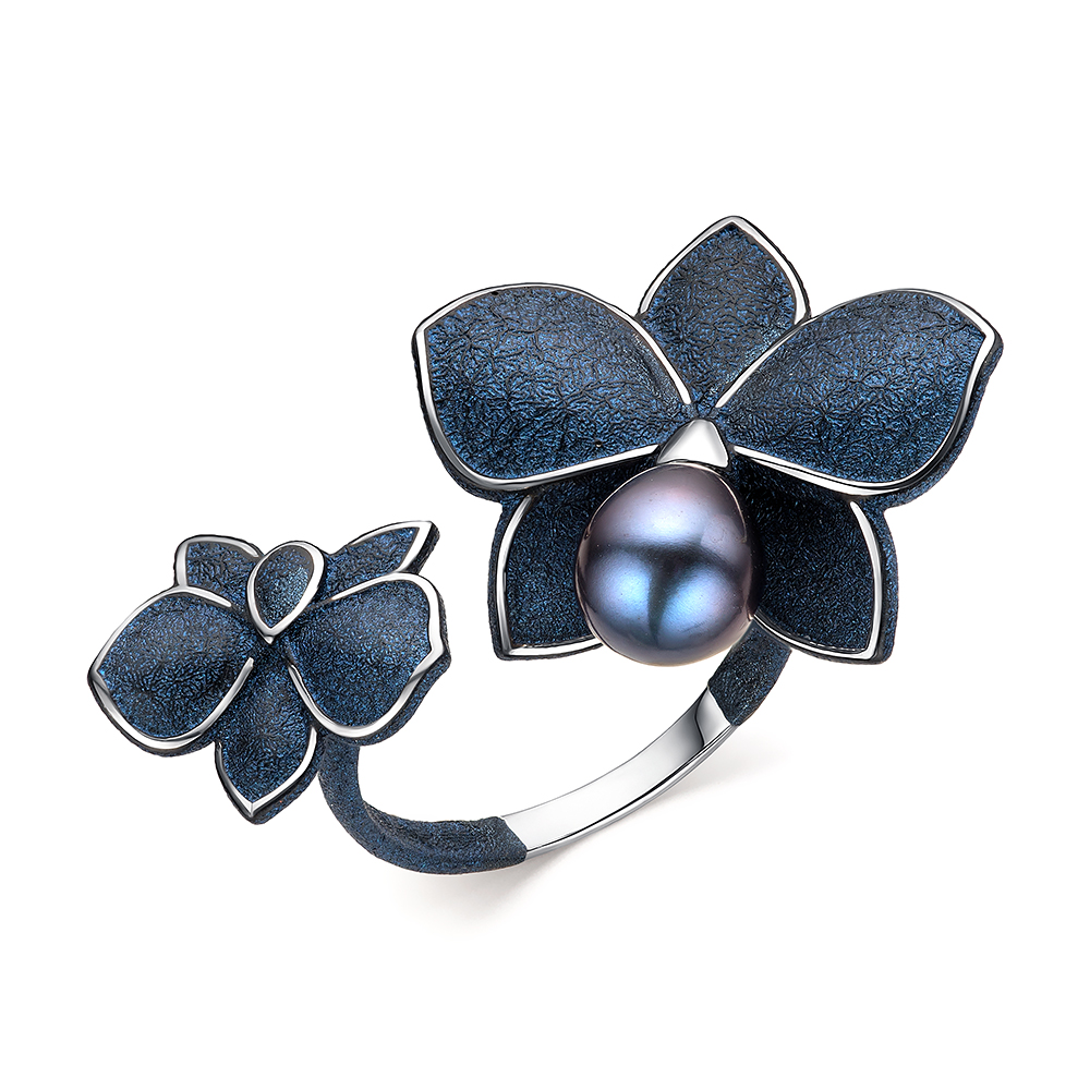 Кольцо "Цветы" с жемчугом и эмалью из серебра 925 пробы арт. 51805S2U