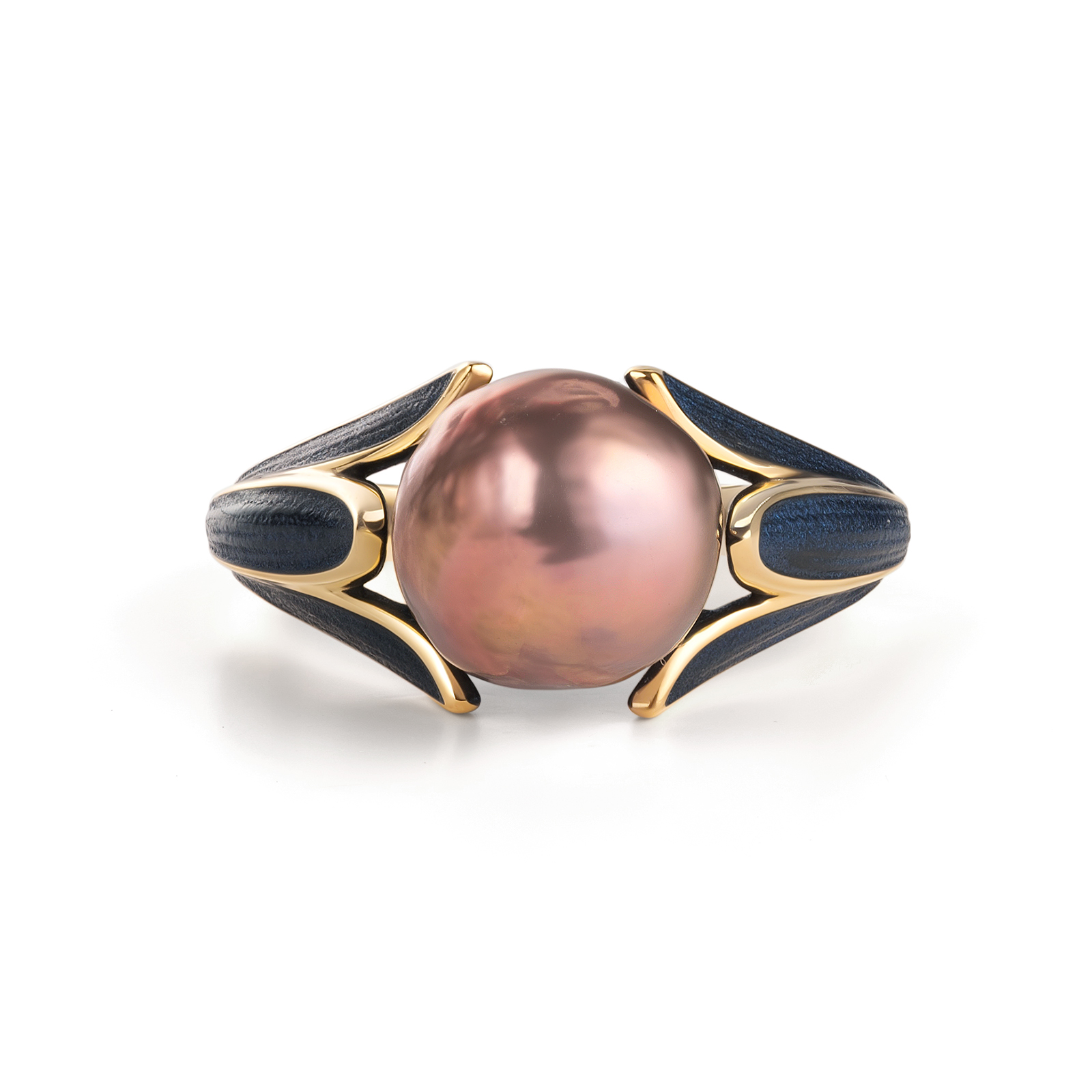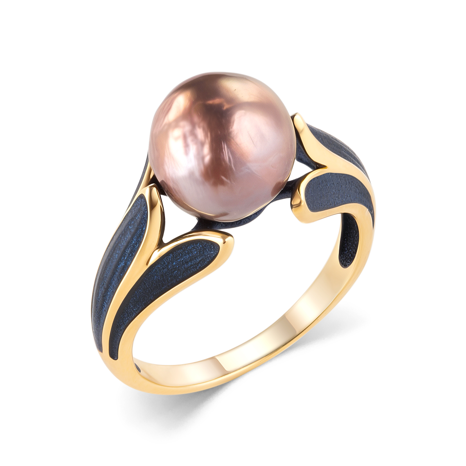 Кольцо с жемчугом и эмалью из серебра 925 пробы с позолотой