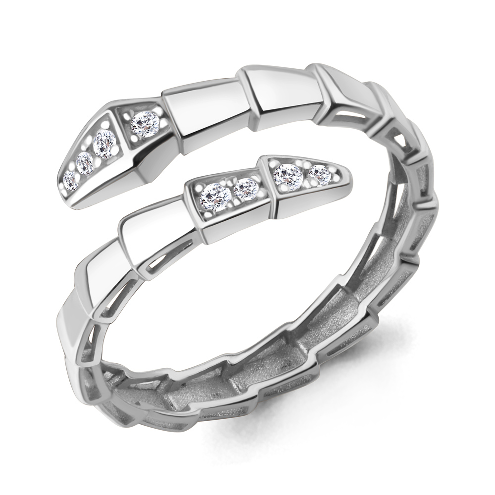 Кольцо "Змея" с фианитами из белого золота 585 пробы