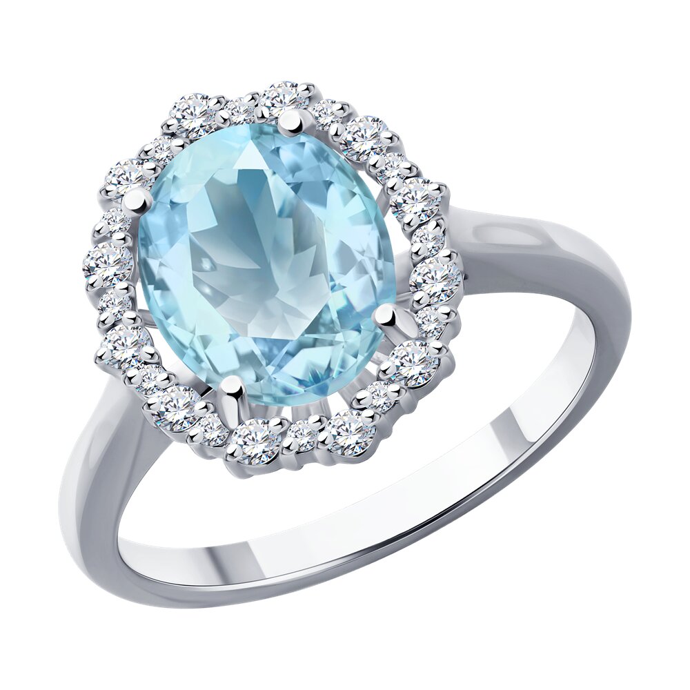 Кольцо с аквамарином и бриллиантами из белого золота 585 пробы арт. 6014373-3