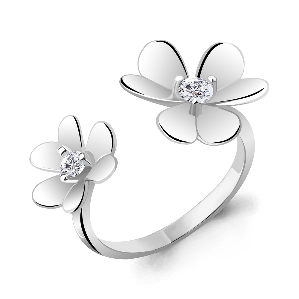 Кольцо "Цветы" с фианитами из серебра 925 пробы