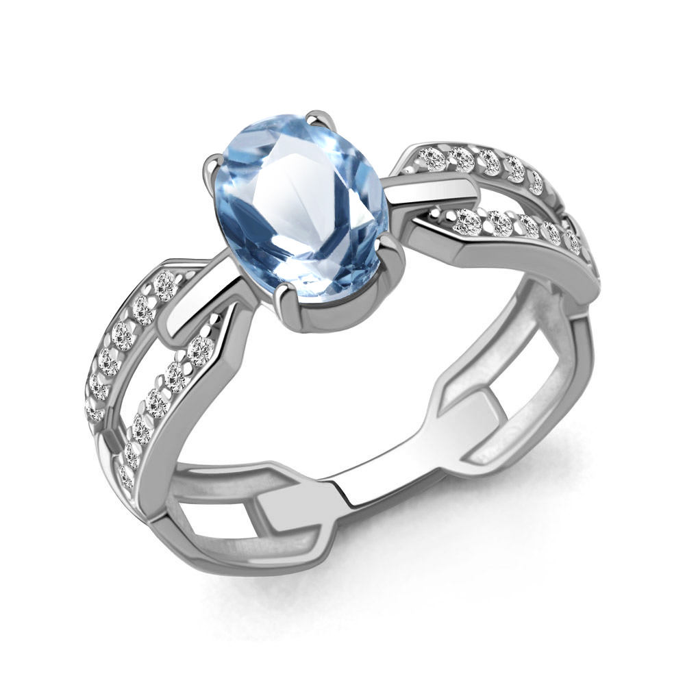 Кольцо с топазом и фианитами из белого золота 585 пробы