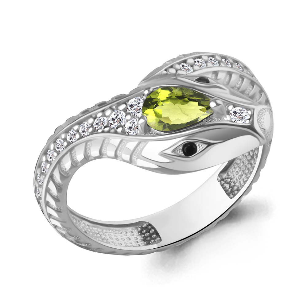 Кольцо "Змея" с хризолитом, фианитами и нанокристаллами из серебра 925 пробы арт. 65023507АЧ.5