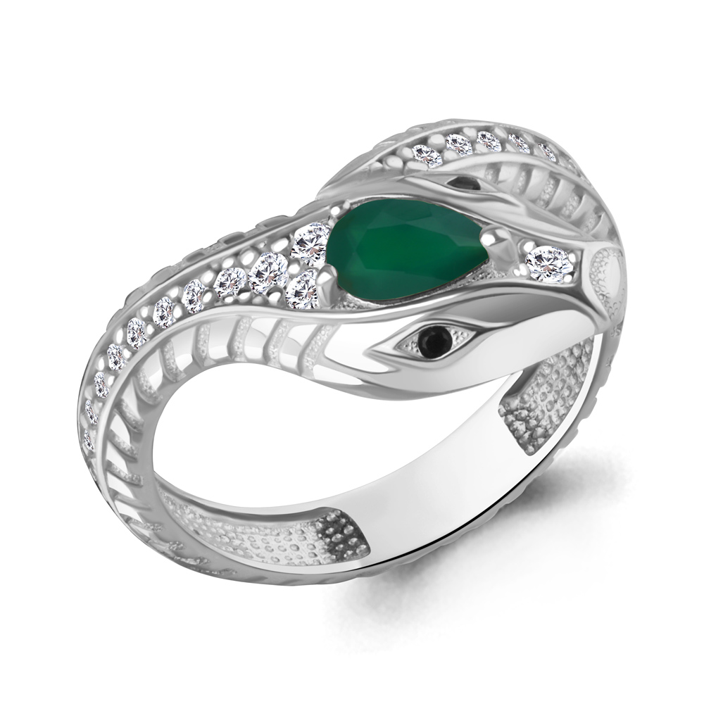 Кольцо "Змея" с агатом, фианитами и нанокристаллами из серебра 925 пробы арт. 65023509АЧ.5