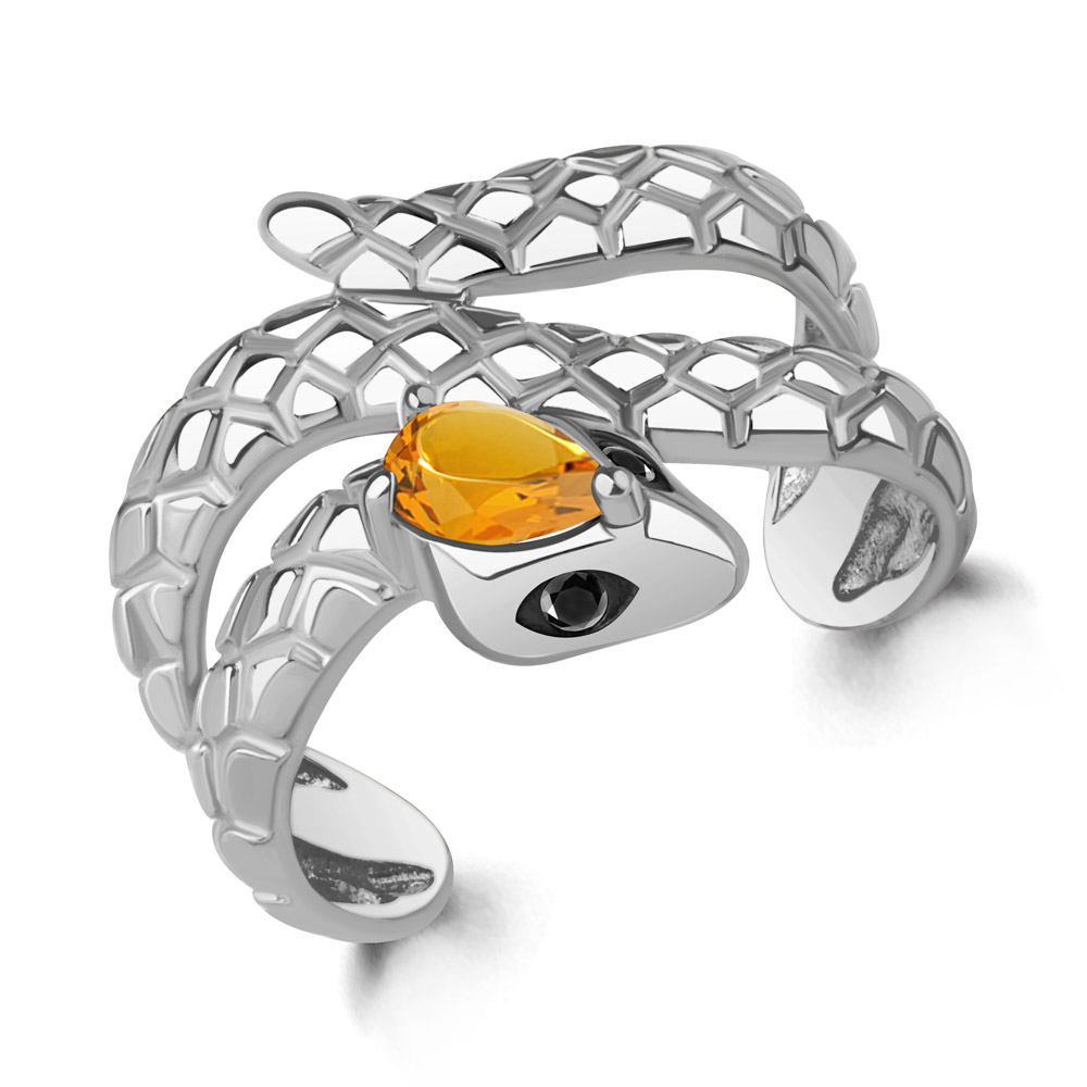 Кольцо "Змея" с цитрином и нанокристаллами из серебра 925 пробы арт. 65026206Ч.5