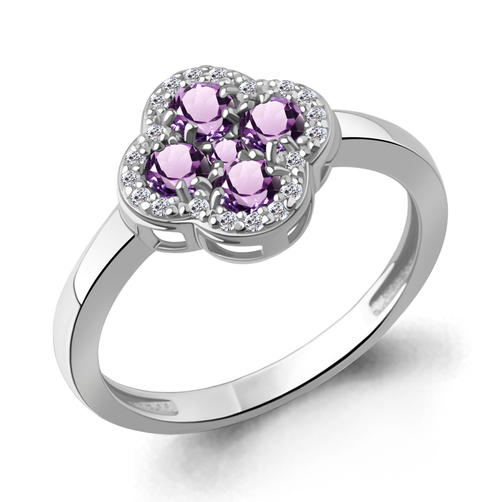 Кольцо "Клевер" с аметистами и фианитами из серебра 925 пробы арт. 65032804А.5