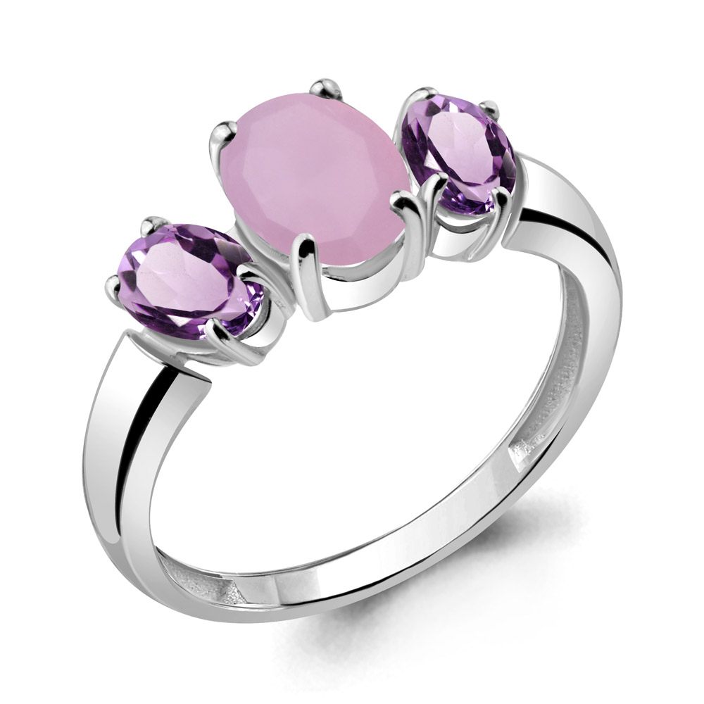 Кольцо с аметистами и розовым наноопалом из серебра 925 пробы арт. 69395611.5