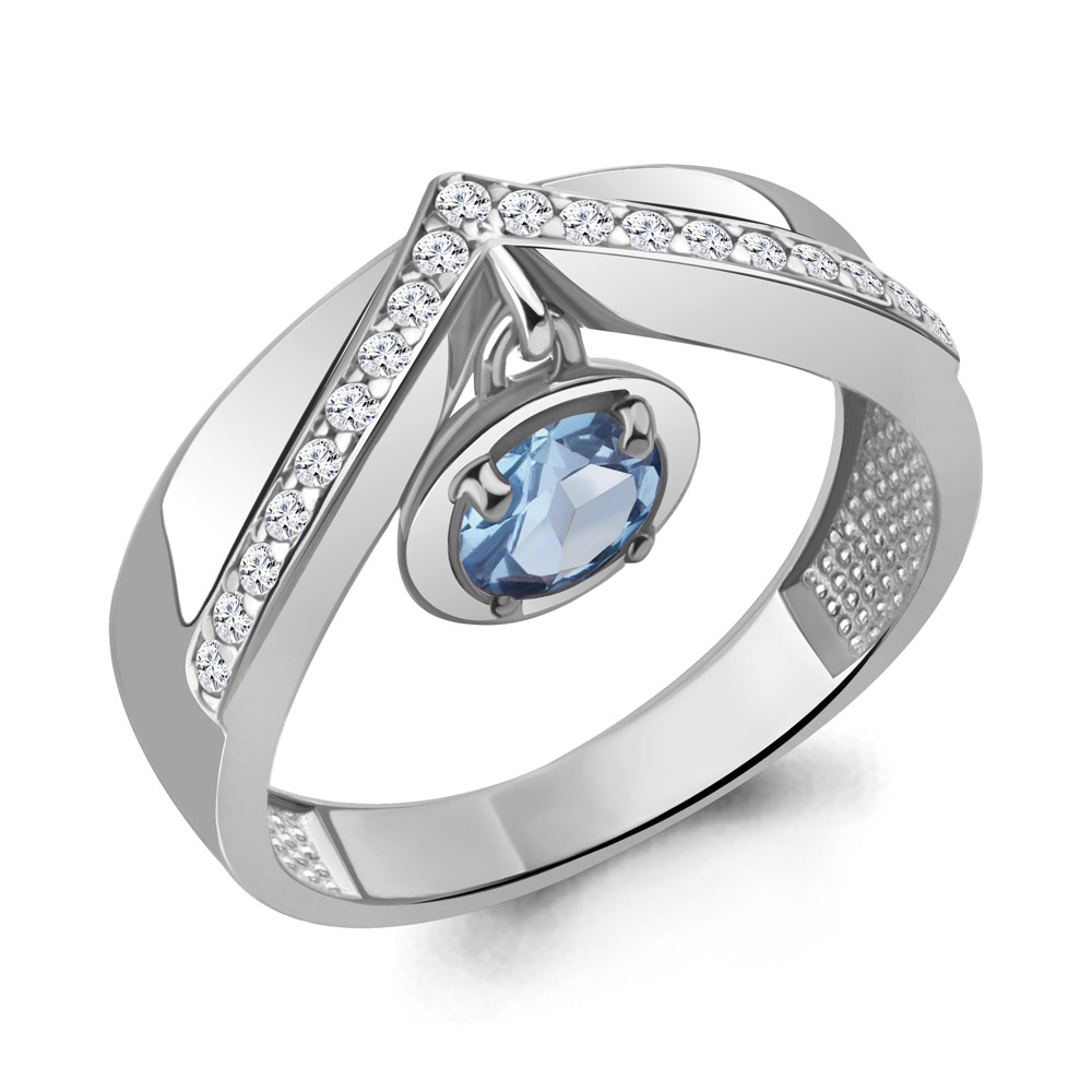 Кольцо с фианитом и топазом Swiss Blue из серебра 925 пробы арт. 6985405А.5