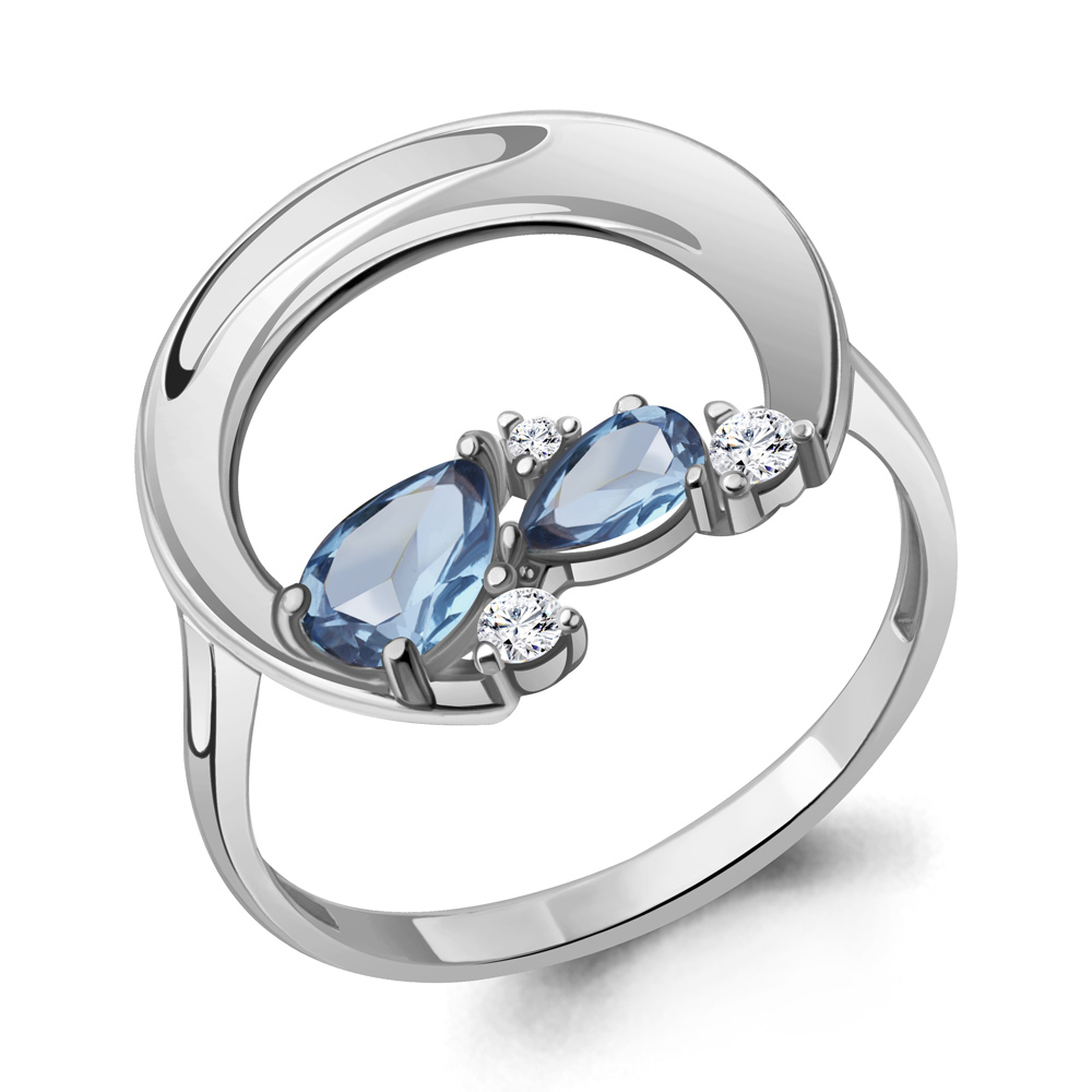 Кольцо с топазами и фианитами из серебра 925 пробы