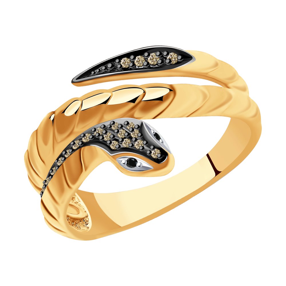 Кольцо "Змея" с бриллиантами из золота 585 пробы
