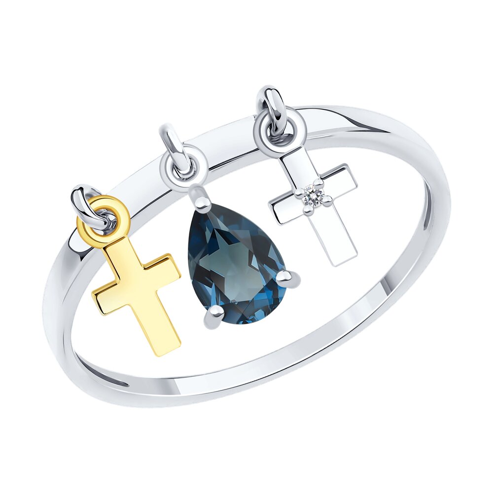 Кольцо "Кресты" с топазом и бриллиантом из золота 585 пробы арт. 71-00364-3