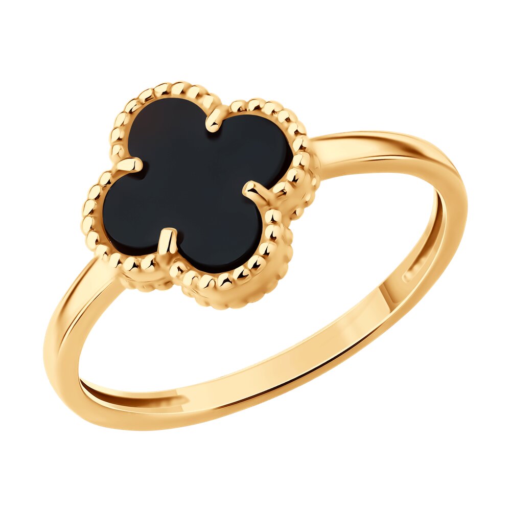 Кольцо "Клевер" с ониксом из золота 585 пробы арт. 717192