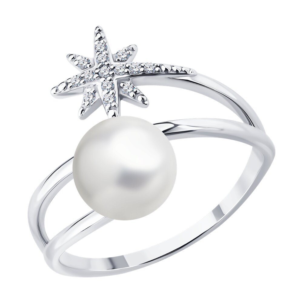 Кольцо "Звезда" с жемчугом и бриллиантами из белого золота 585 пробы арт. 79-10048-3