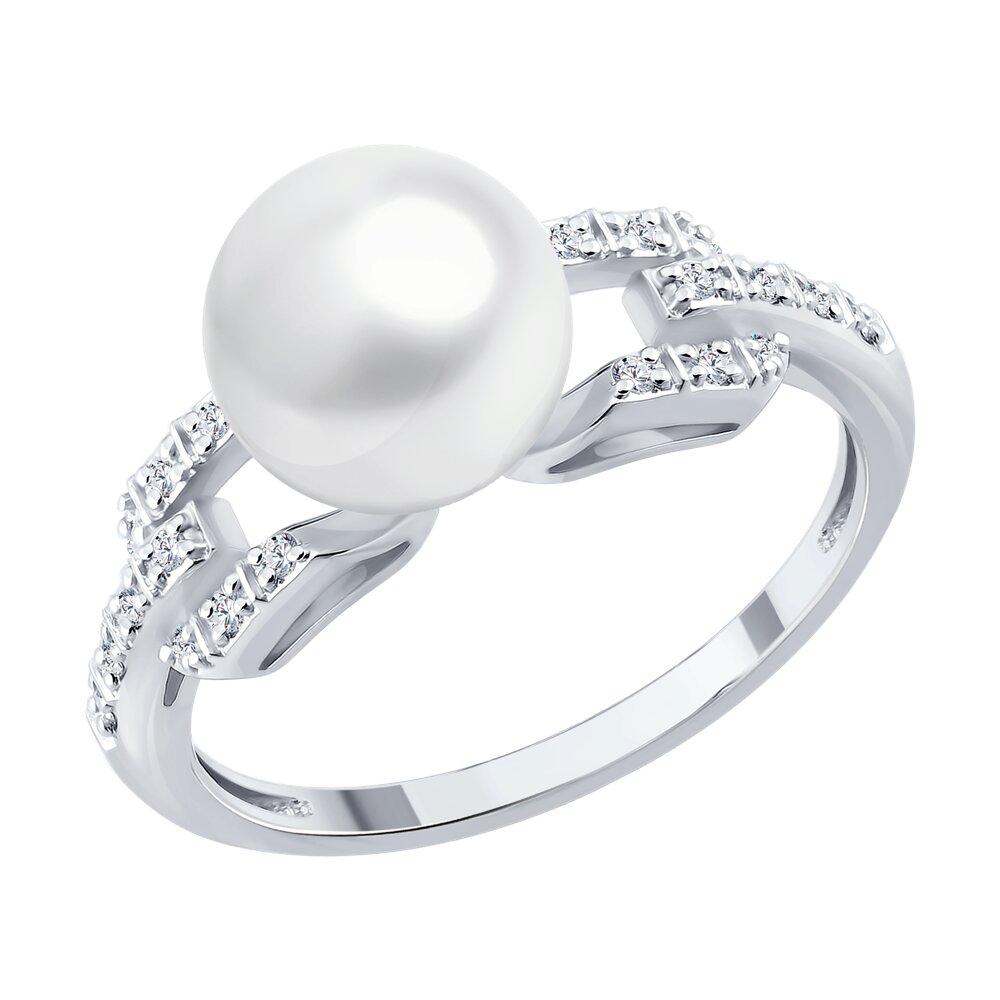 Кольцо с бриллиантами и жемчугом из белого золота 585 пробы арт. 79-10049-3