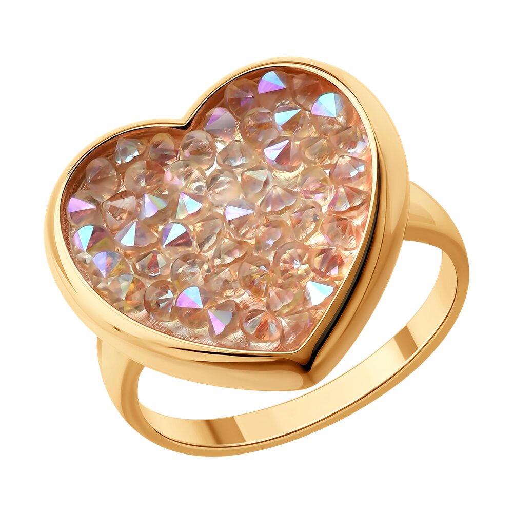 Кольцо "Сердце" с кристальной тканью из серебра 925 пробы с позолотой арт. 93011214