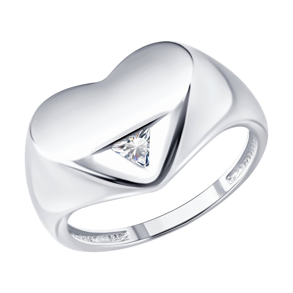 Кольцо "Сердце" с фианитом из серебра 925 пробы арт. 94-110-00271-1