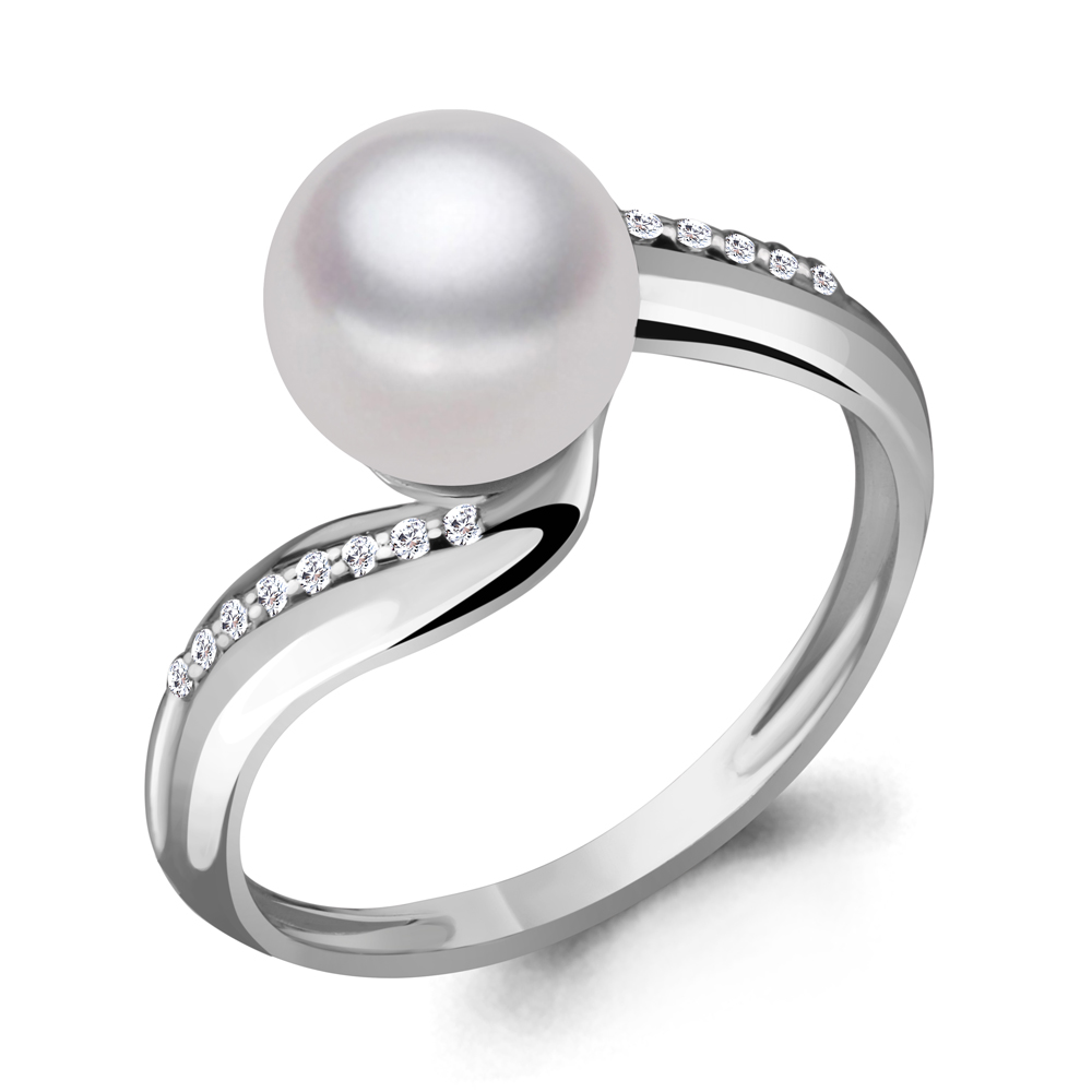 Кольцо с жемчугом и бриллиантами из белого золота 585 пробы