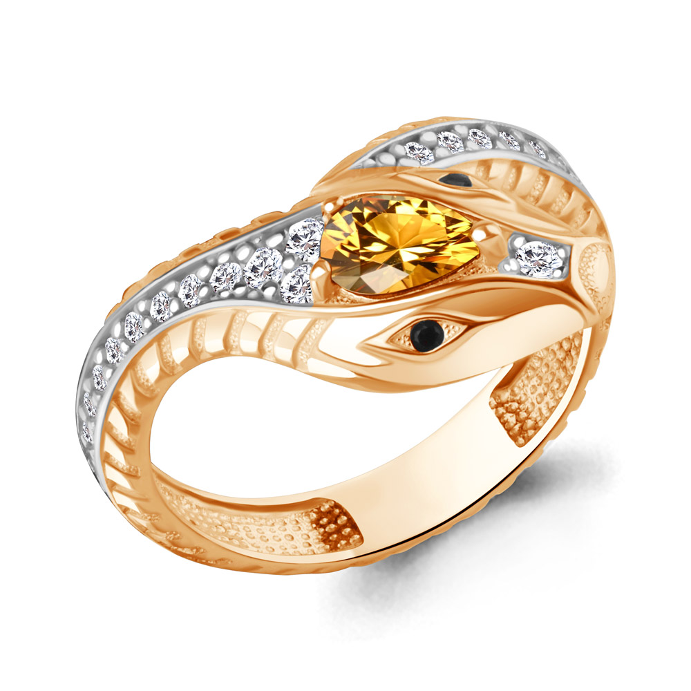 Кольцо "Змея" с цитрином и бриллиантами из золота 585 пробы арт. 96451906.1