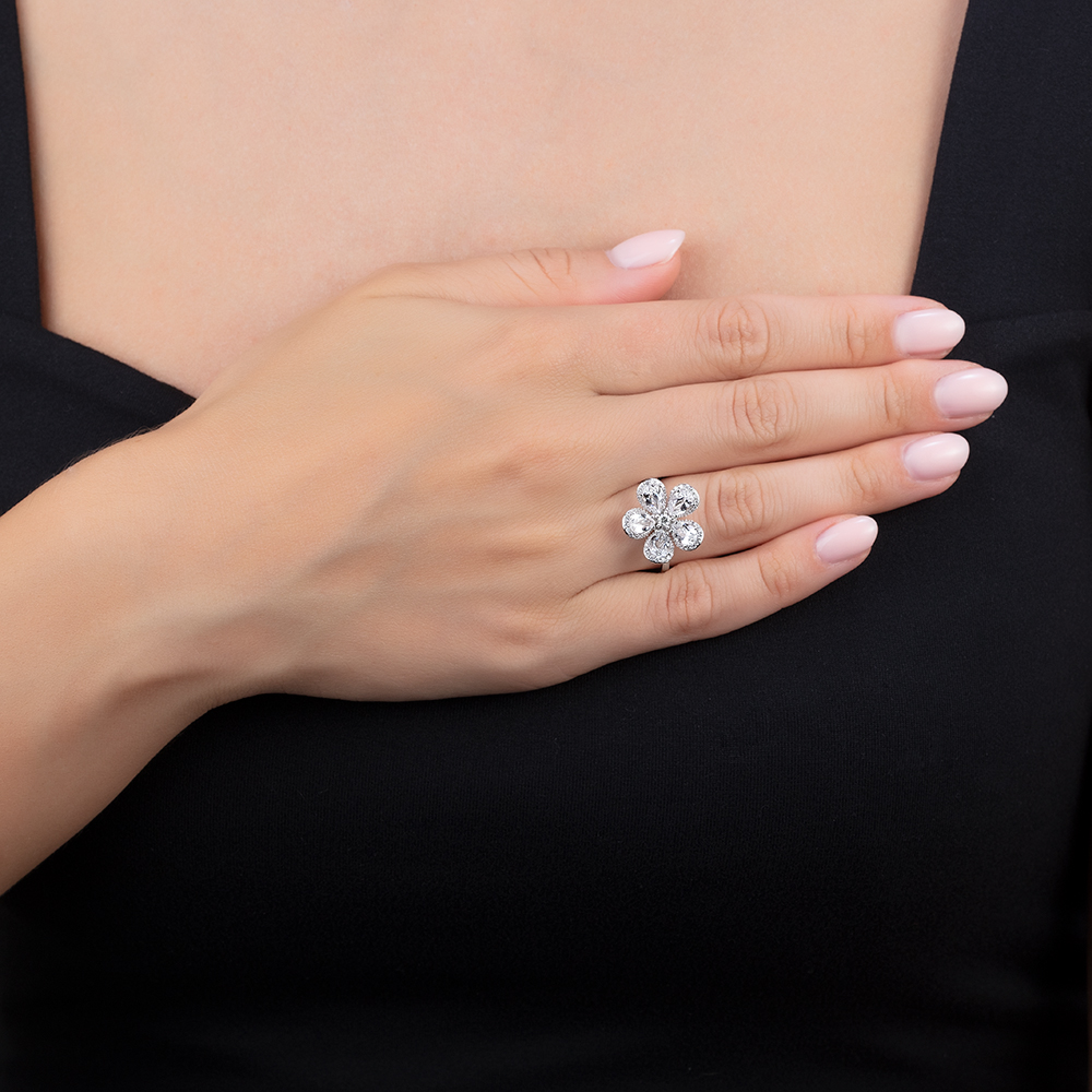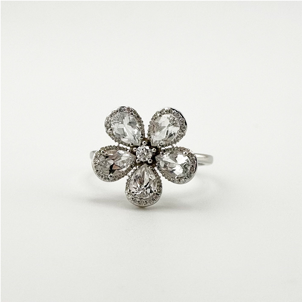 Кольцо "Цветок" с бриллиантами и топазами из белого золота 585 пробы