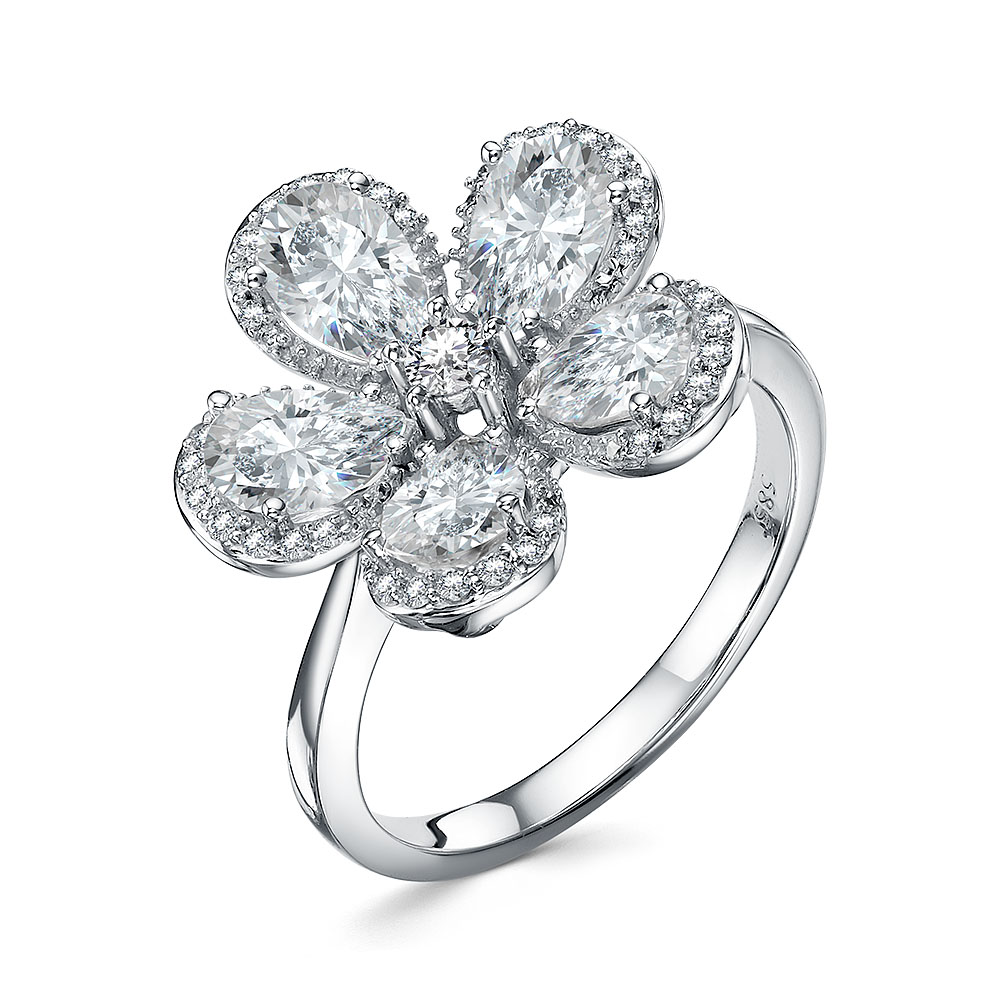 Кольцо "Цветок" с бриллиантами и топазами из белого золота 585 пробы арт. AR80273-WD-WTP
