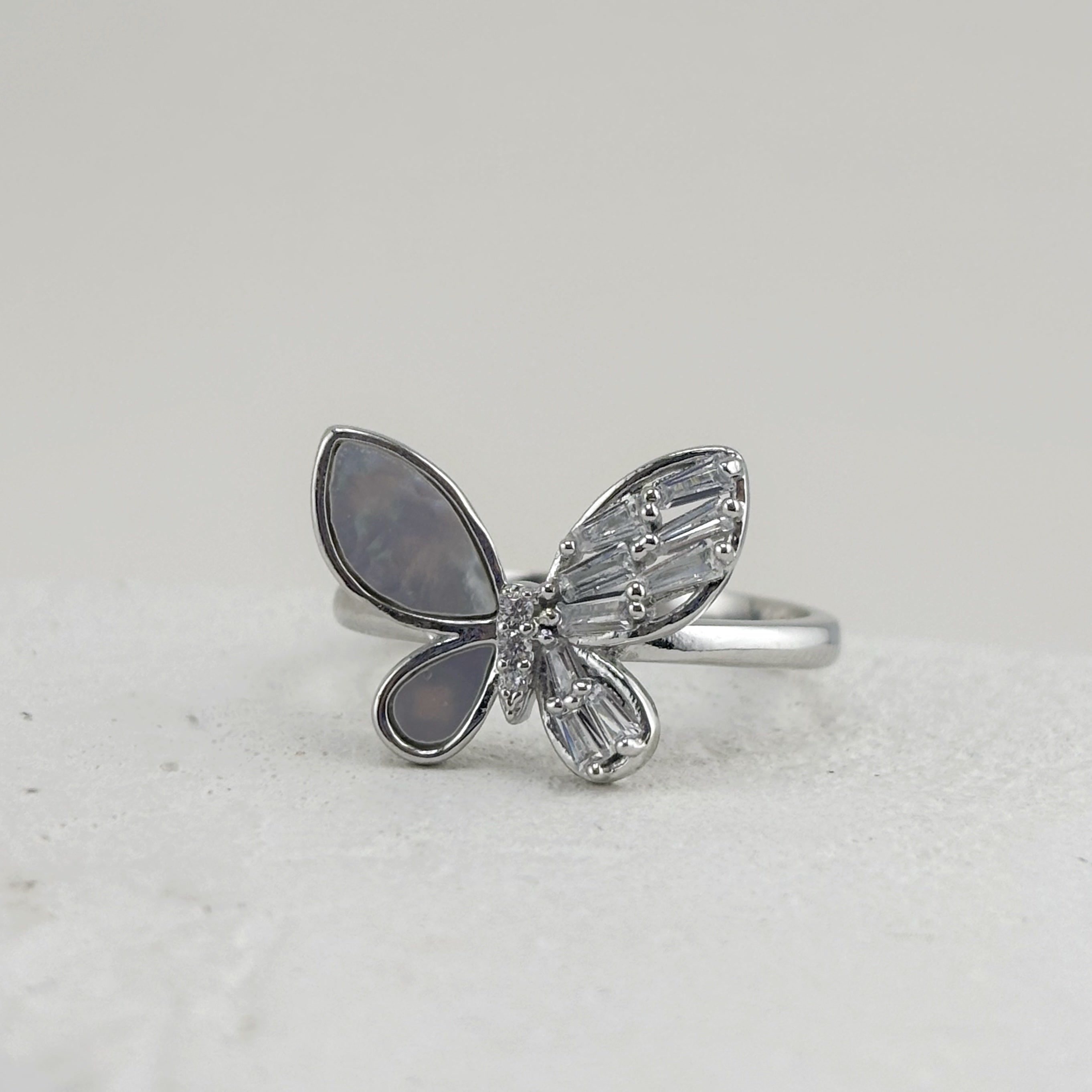 Кольцо "Бабочка" с фианитами и перламутром из серебра 925 пробы