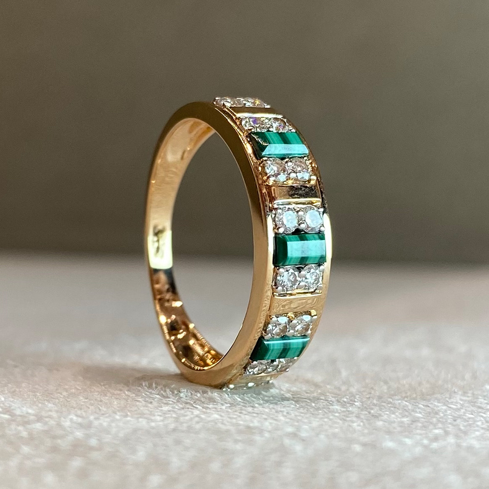 Кольцо с бриллиантами и малахитом из золота 585 пробы