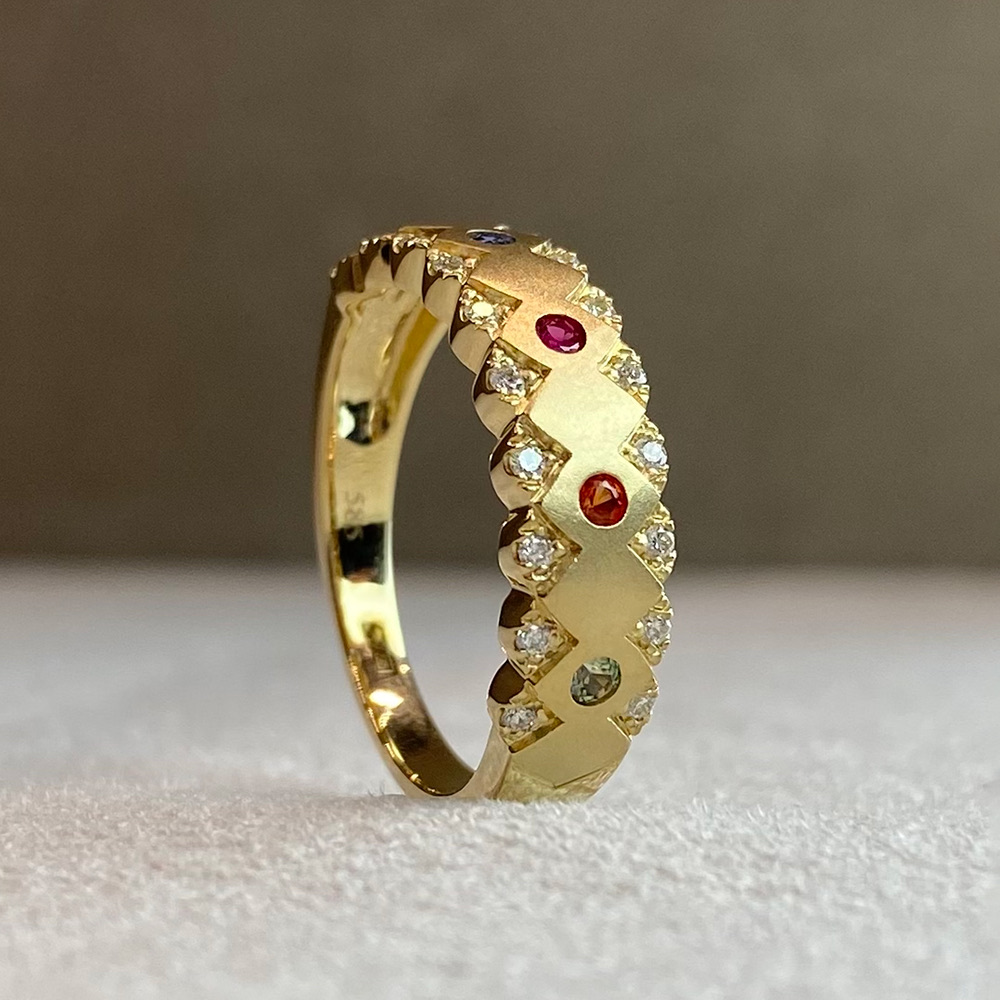 Кольцо с сапфирами и бриллиантами из желтого золота 585 пробы арт. CR15839-WD-FS-YG