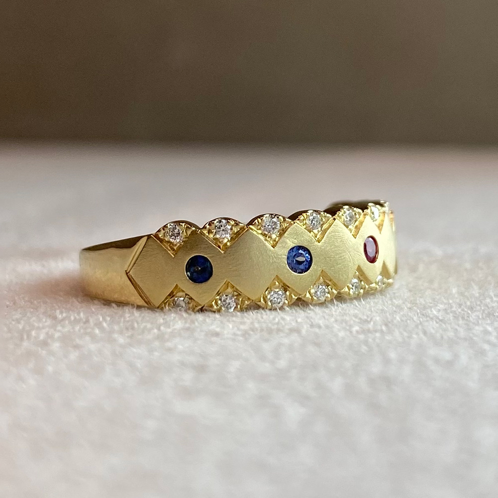 Кольцо с сапфирами и бриллиантами из желтого золота 585 пробы