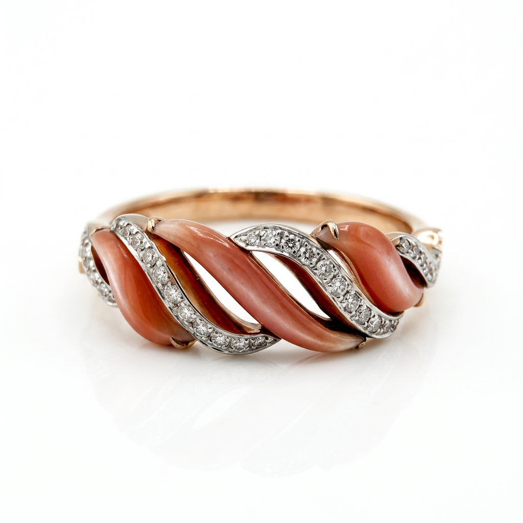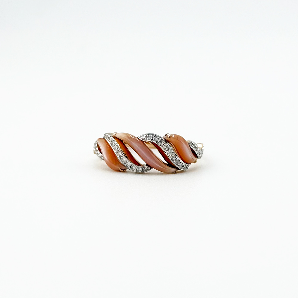Кольцо с перламутром и бриллиантами из золота 585 пробы