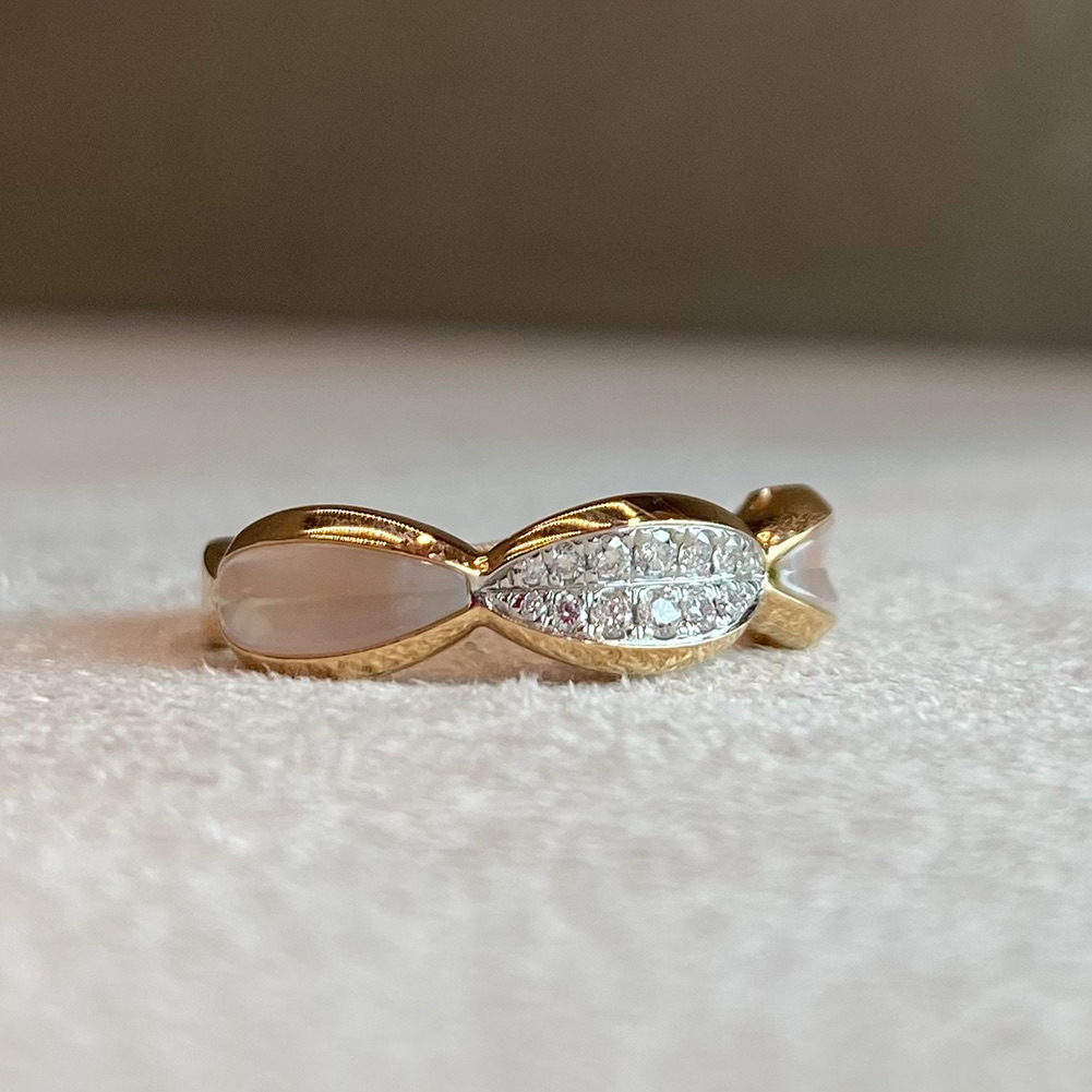 Кольцо с бриллиантами и перламутром из золота 585 пробы