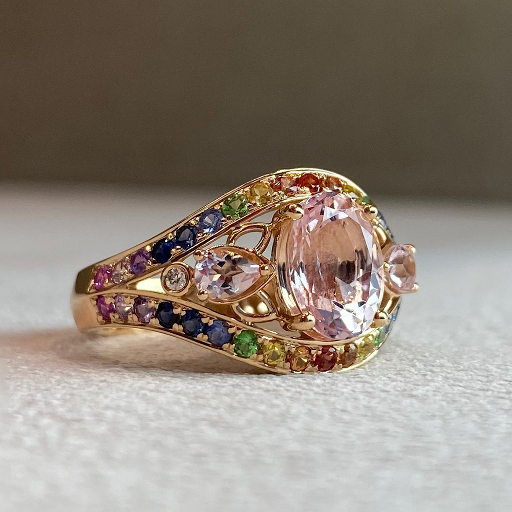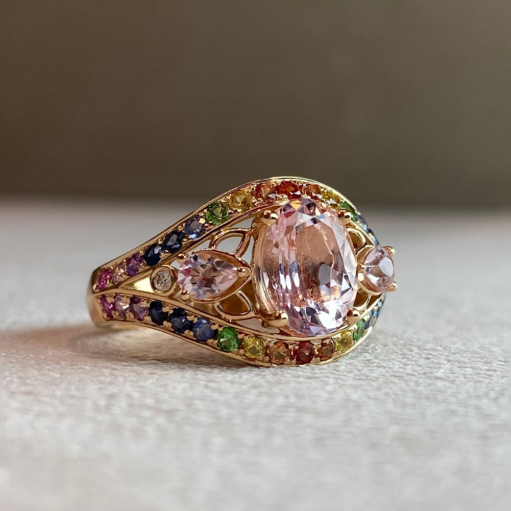 Кольцо с цаворитом, сапфирами и бриллиантами из золота 585 пробы арт. CR18684-WD-MOR-FS-RG