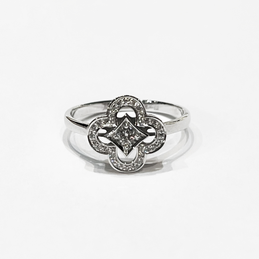 Кольцо "Клевер" с бриллиантами из белого золота 585 пробы