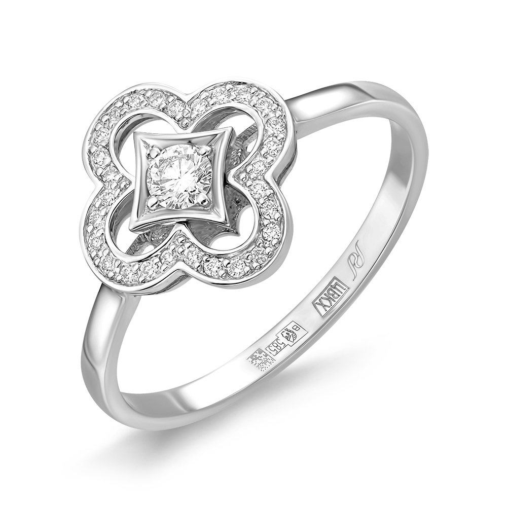 Кольцо "Клевер" с бриллиантами из белого золота 585 пробы арт. К-1780-02