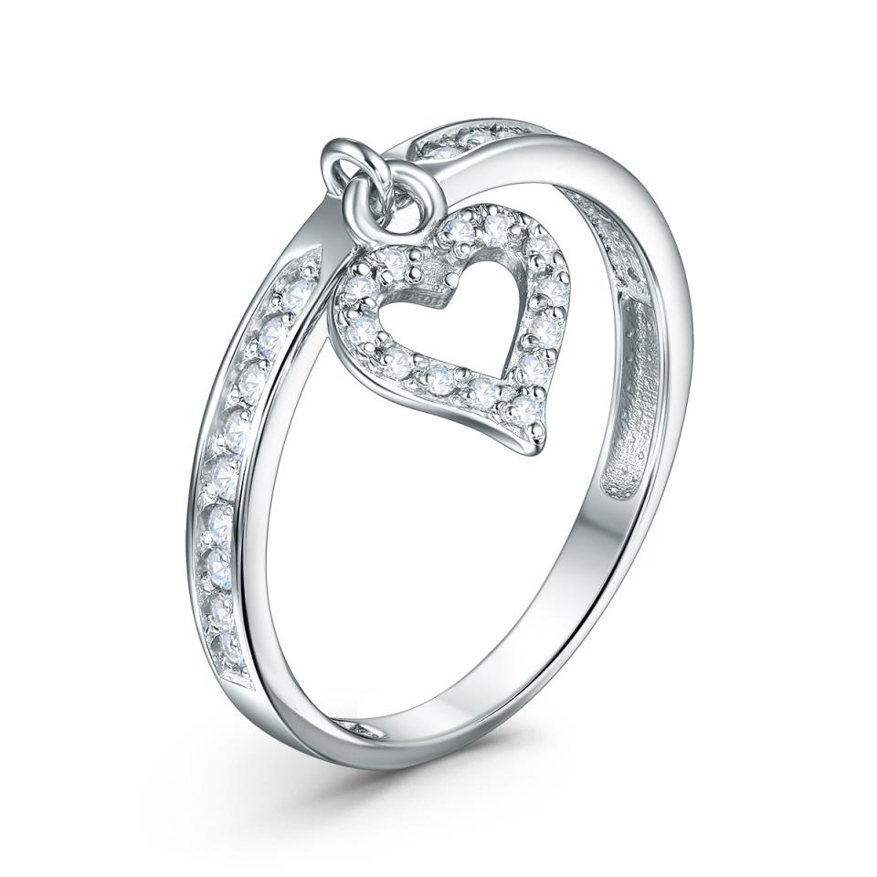 Кольцо "Сердце" с фианитами из серебра 925 пробы