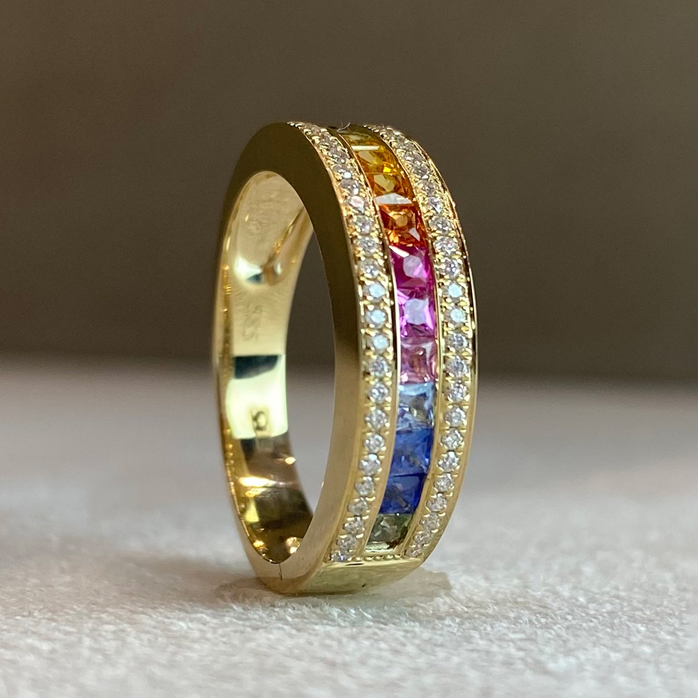 Кольцо с сапфирами и бриллиантами из желтого золота 585 пробы арт. MR84205-WD-R1-YG
