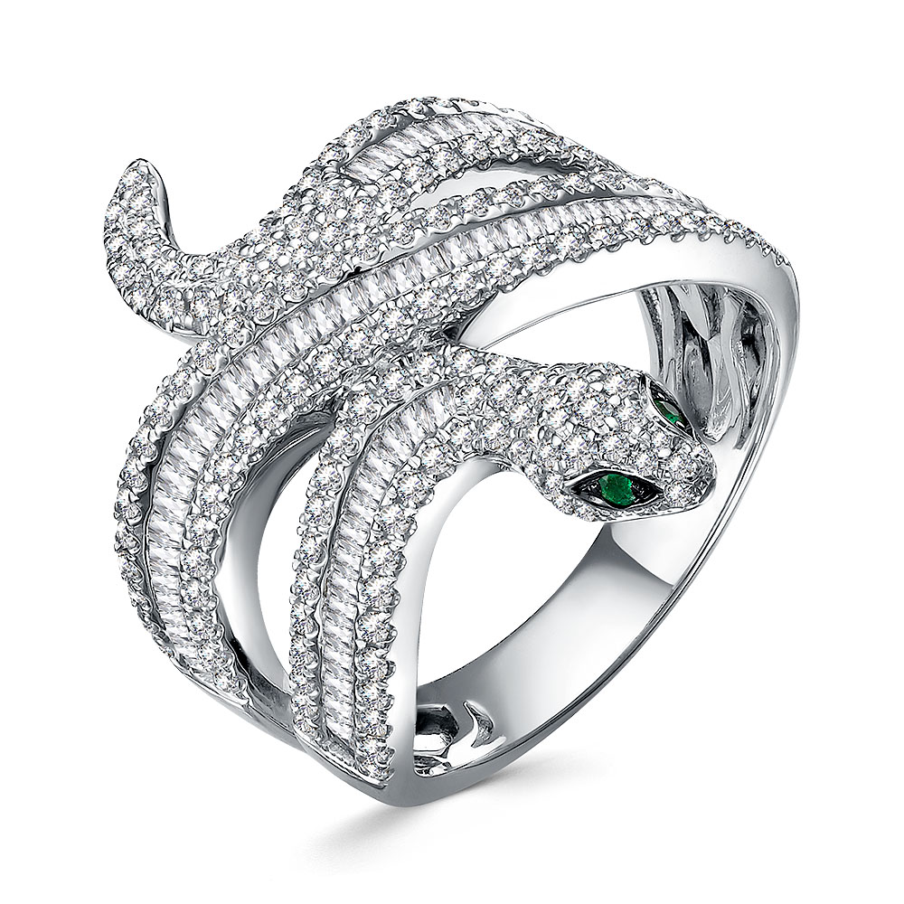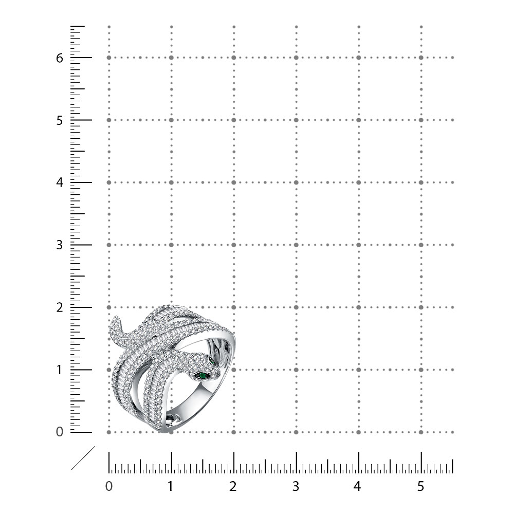Кольцо "Змея" с бриллиантами и изумрудами из белого золота 585 пробы