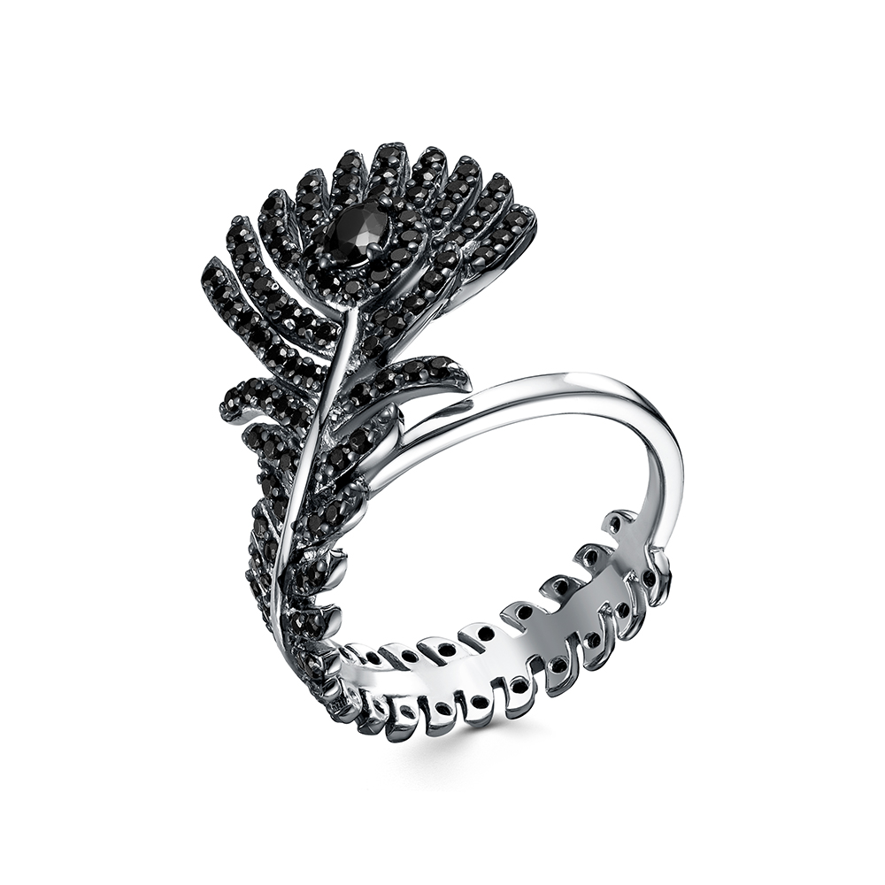 Кольцо "Перо" со шпинелью из серебра 925 пробы