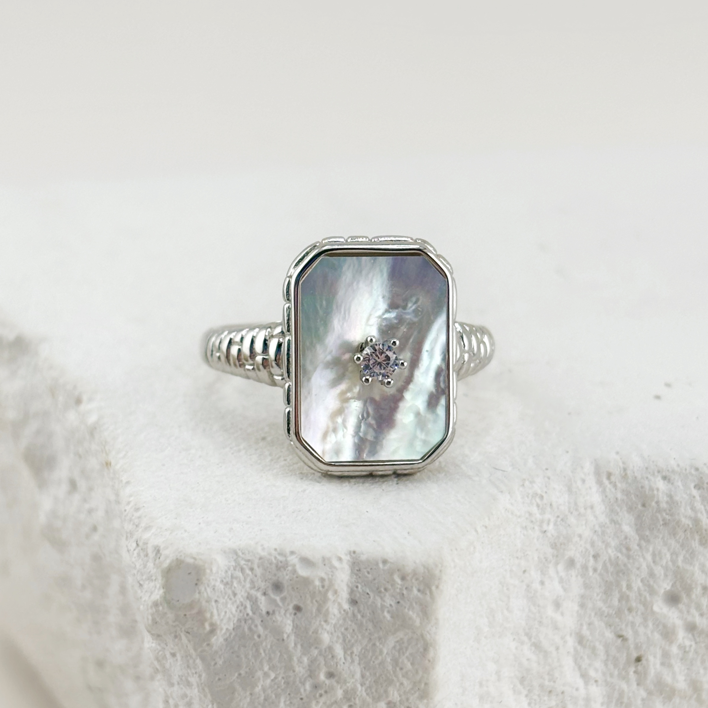 Кольцо с фианитом и перламутром из серебра 925 пробы