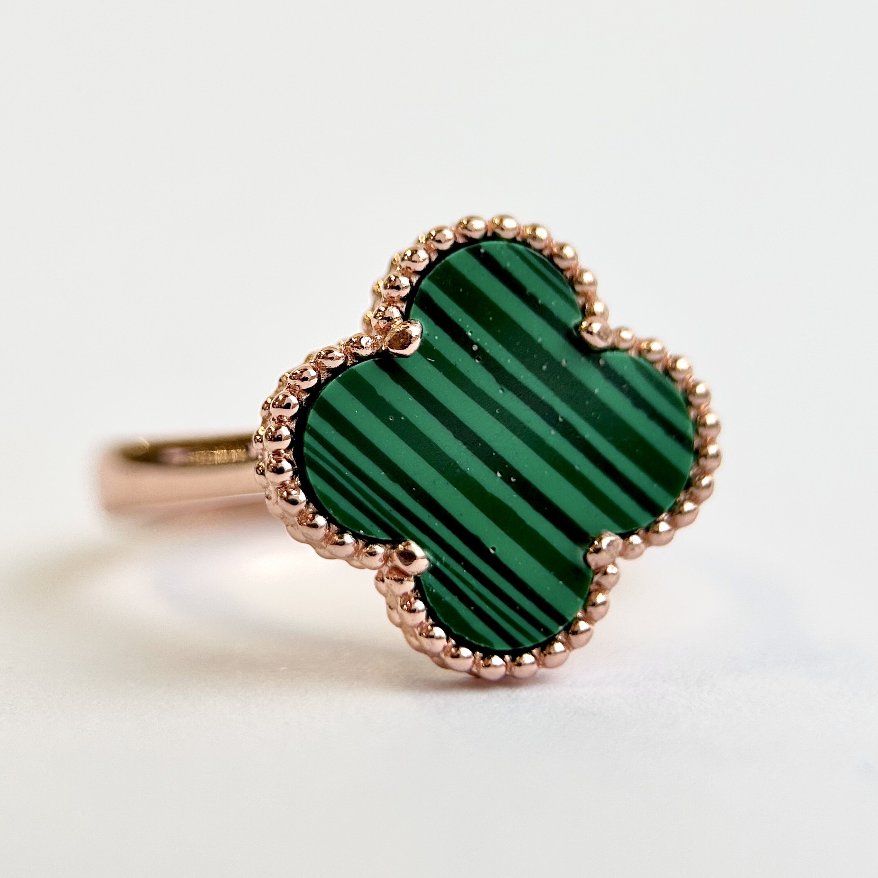 Кольцо "Клевер" с малахитом из серебра 925 пробы с позолотой арт. RG425
