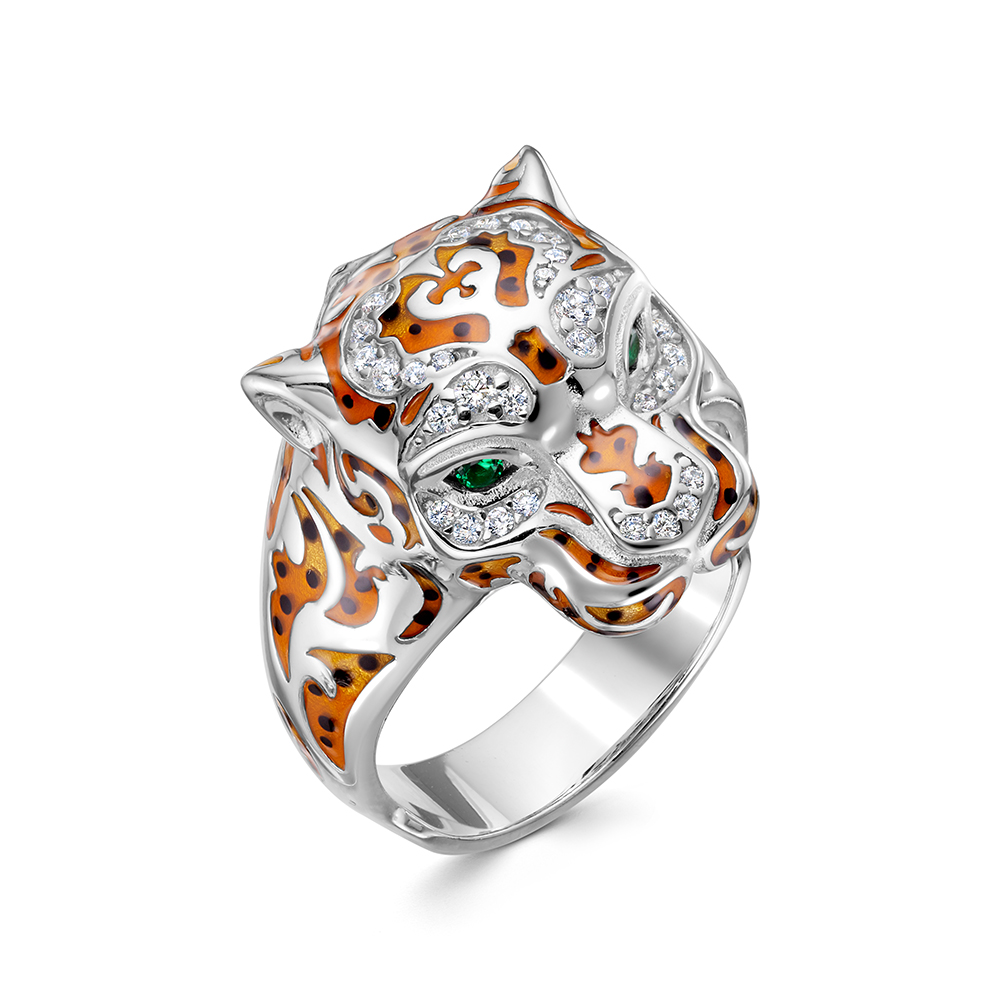 Кольцо "Пантера" с фианитами и эмалью из серебра 925 пробы