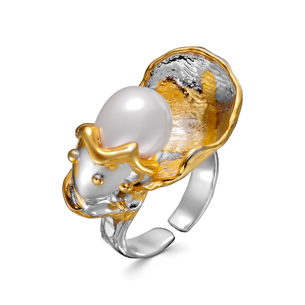 Кольцо с жемчугом из серебра 925 пробы с позолотой арт. RG597
