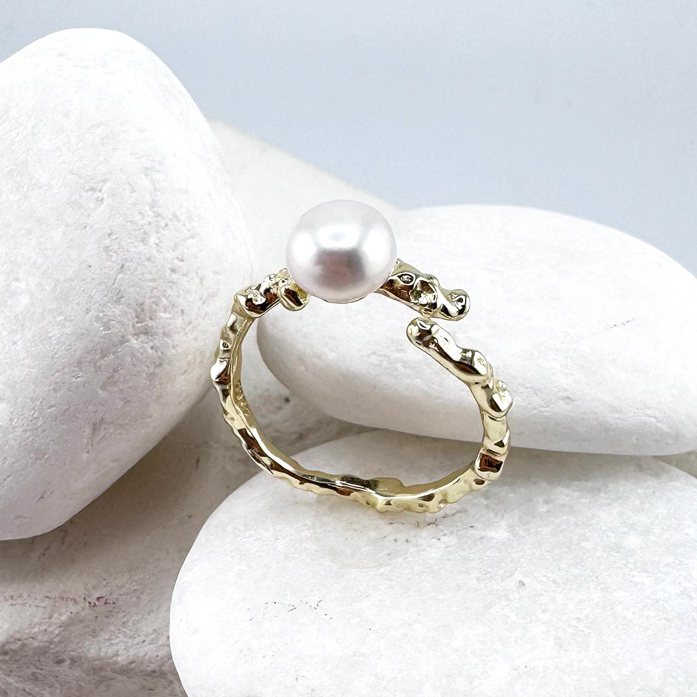 Кольцо с жемчугом из серебра 925 пробы с позолотой арт. RG646