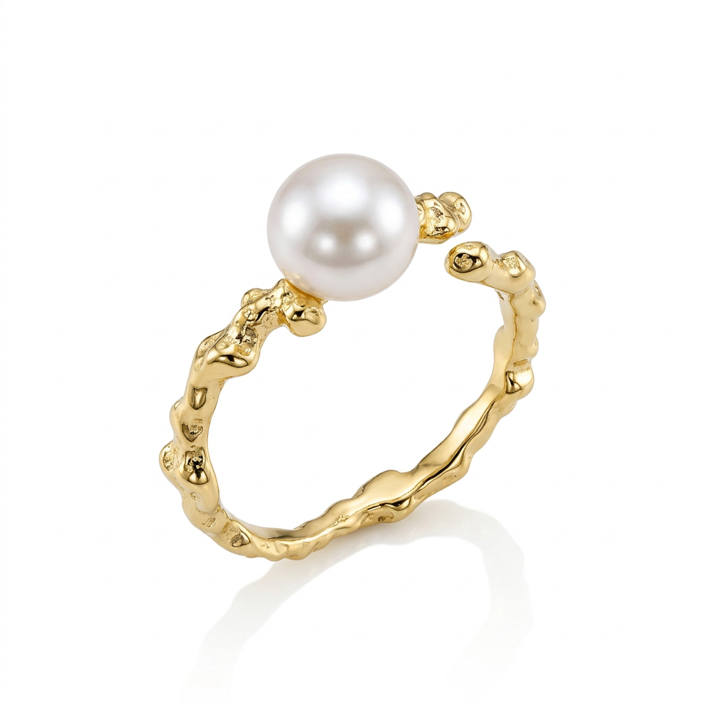 Кольцо с жемчугом из серебра 925 пробы с позолотой