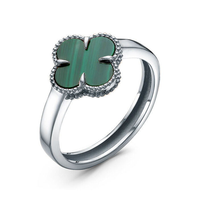 Кольцо "Клевер" с малахитом из серебра 925 пробы арт. с110110м