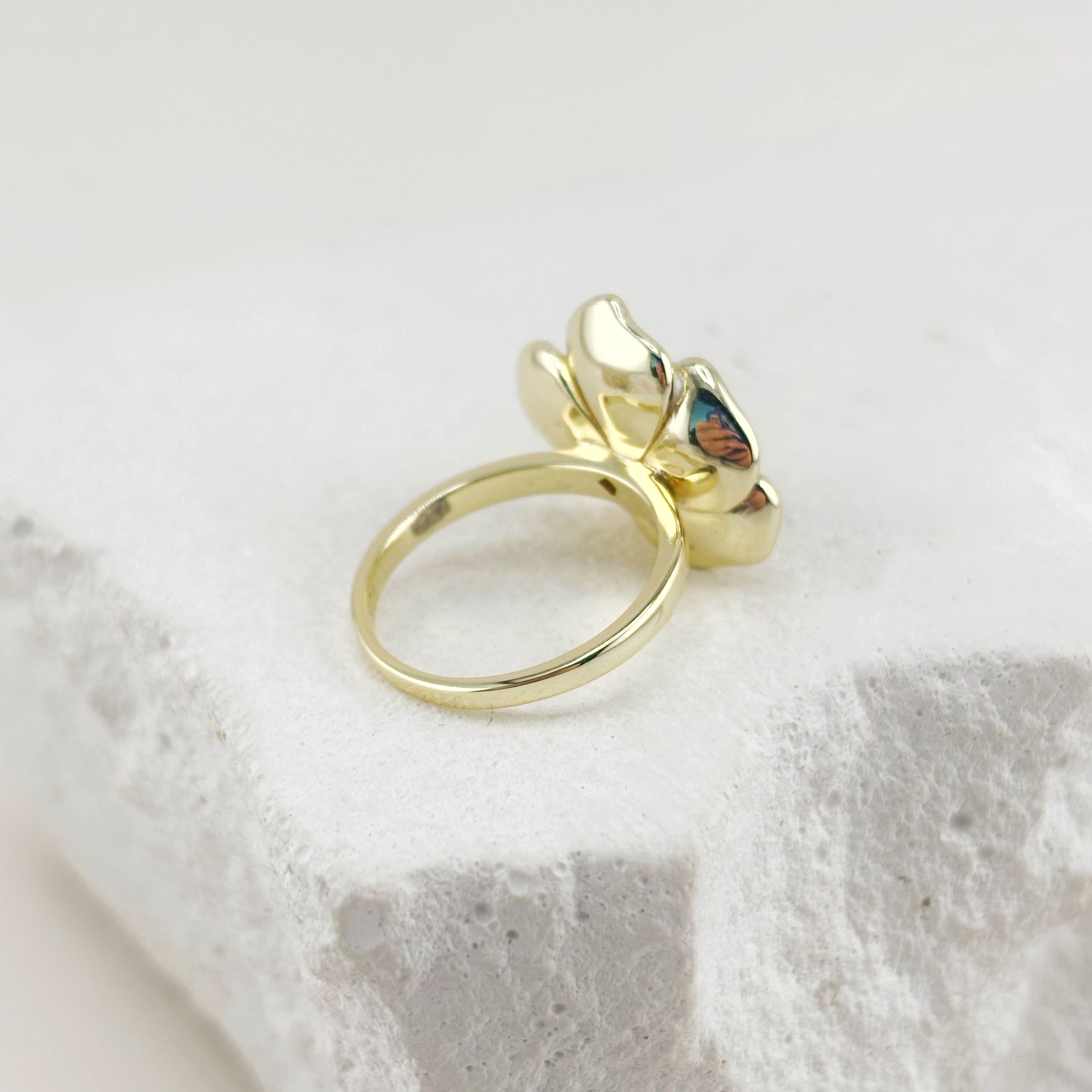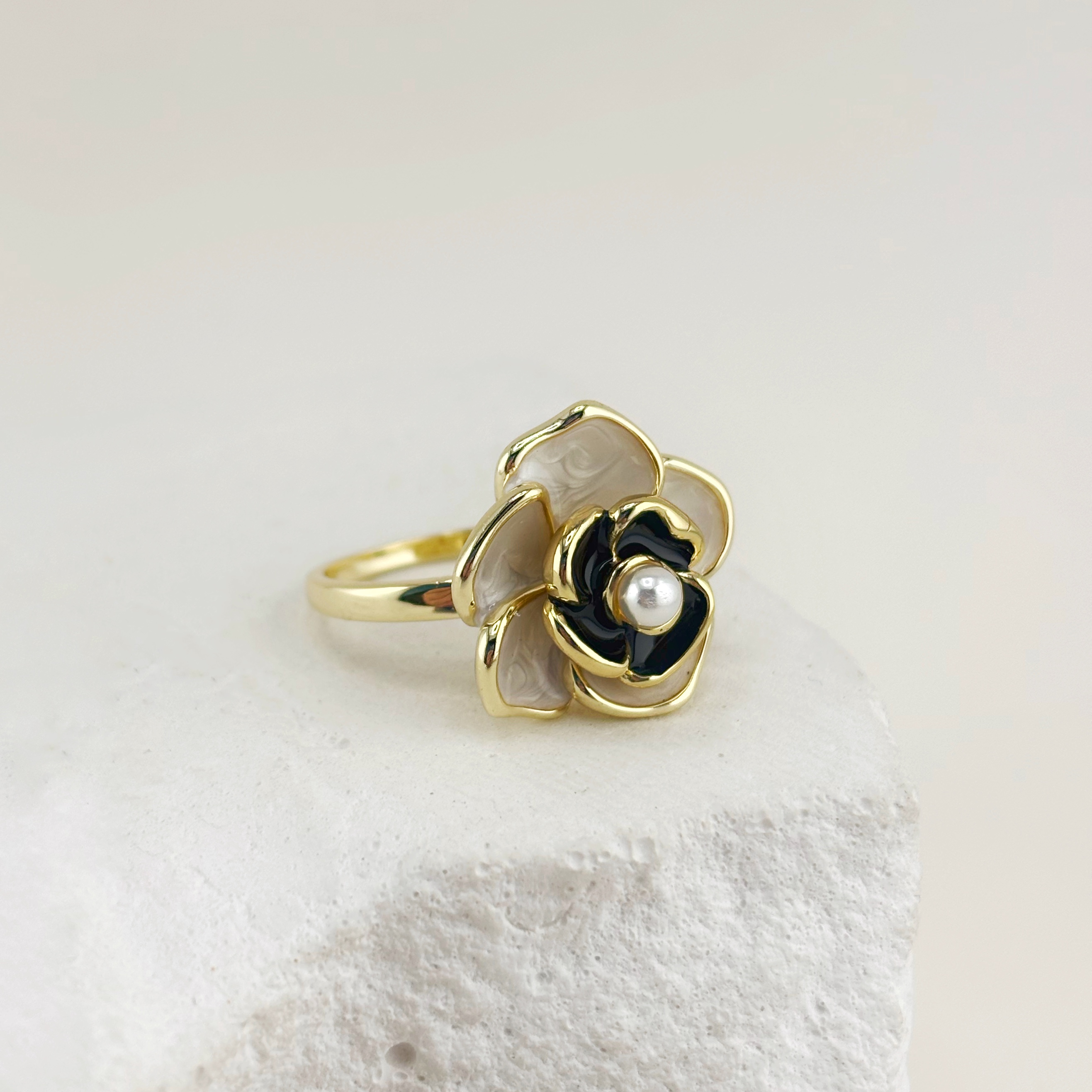 Кольцо "Цветок" с эмалью и перламутром из серебра 925 пробы с позолотой