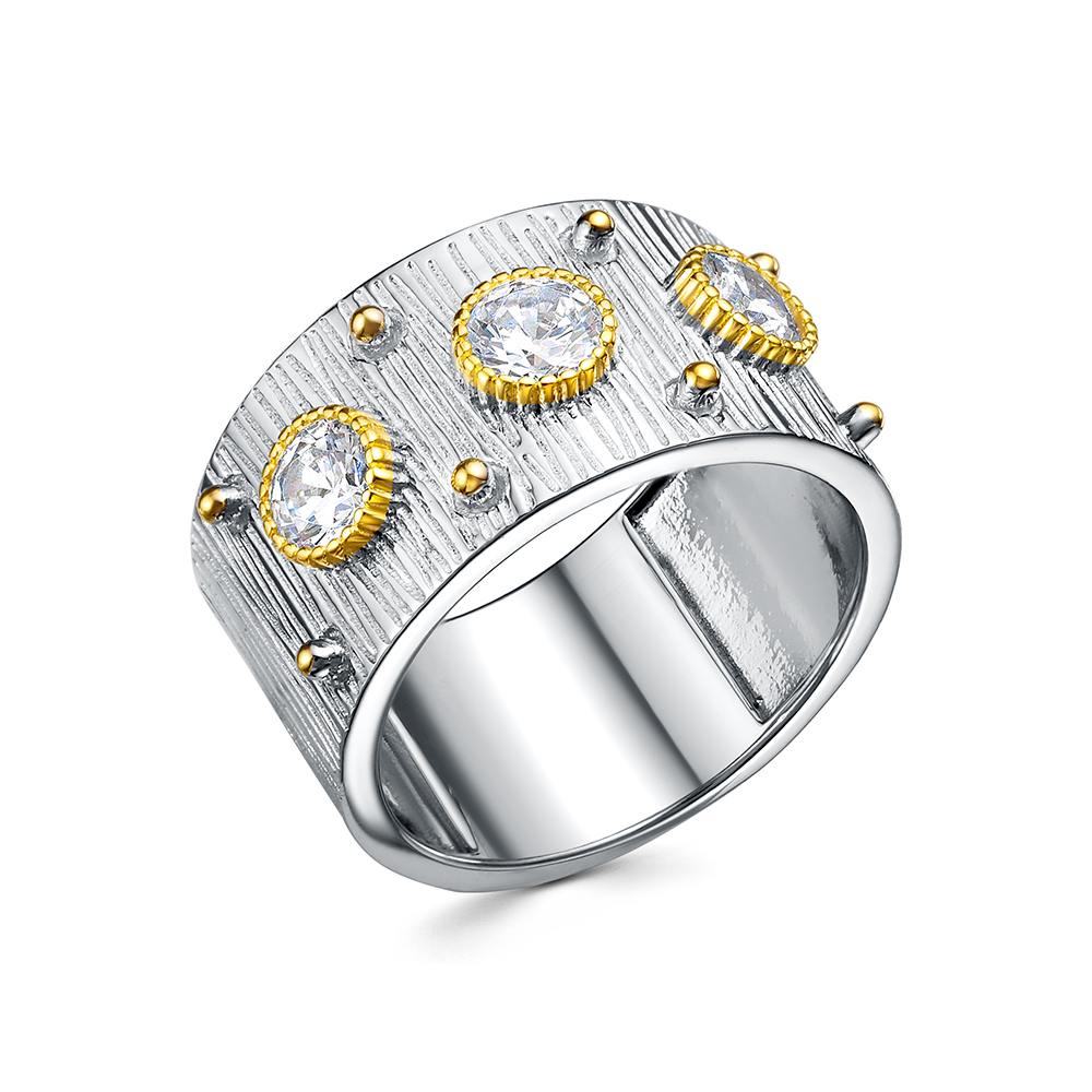 Кольцо с фианитами из серебра 925 пробы с позолотой арт. SR41089-BM