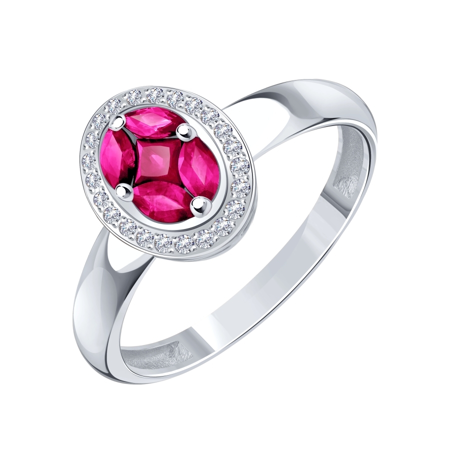 Кольцо с рубинами и бриллиантами из белого золота 585 пробы арт. Т30601Б287-01