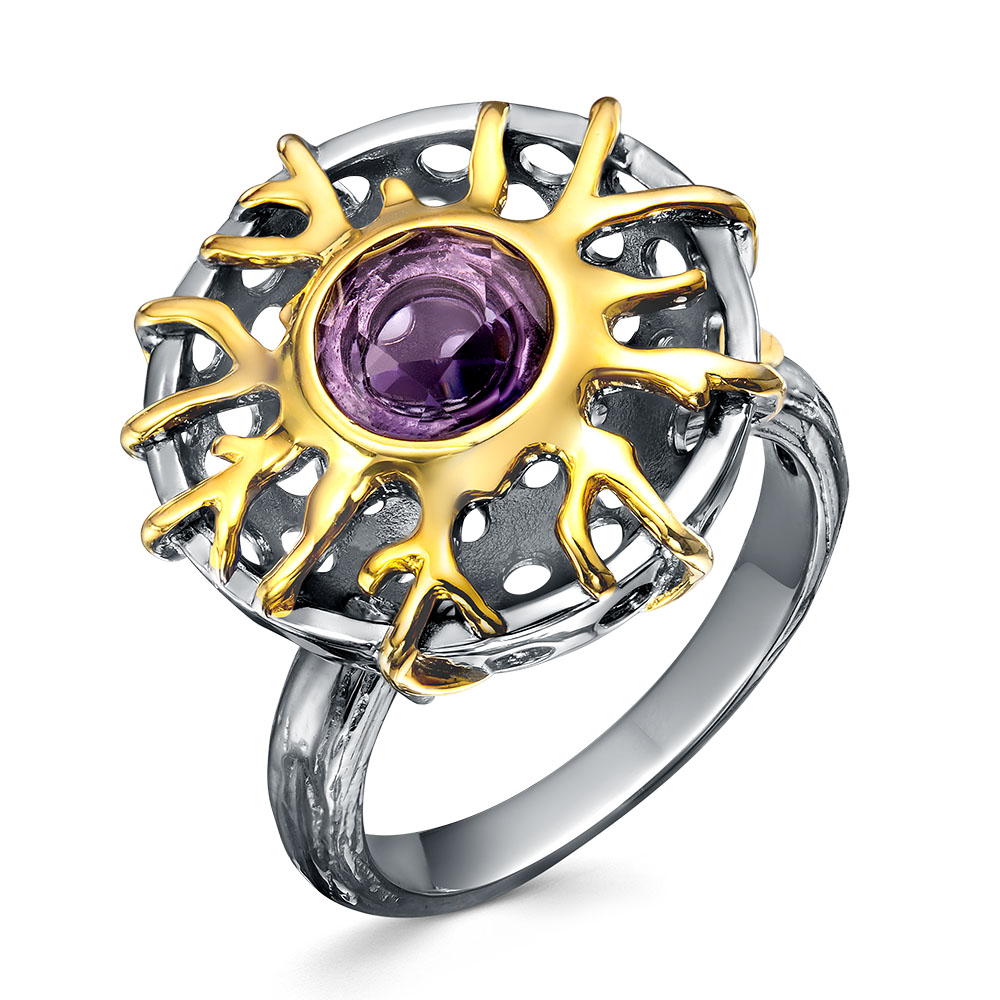 Кольцо с аметистом из серебра 925 пробы с позолотой